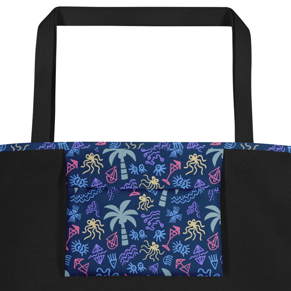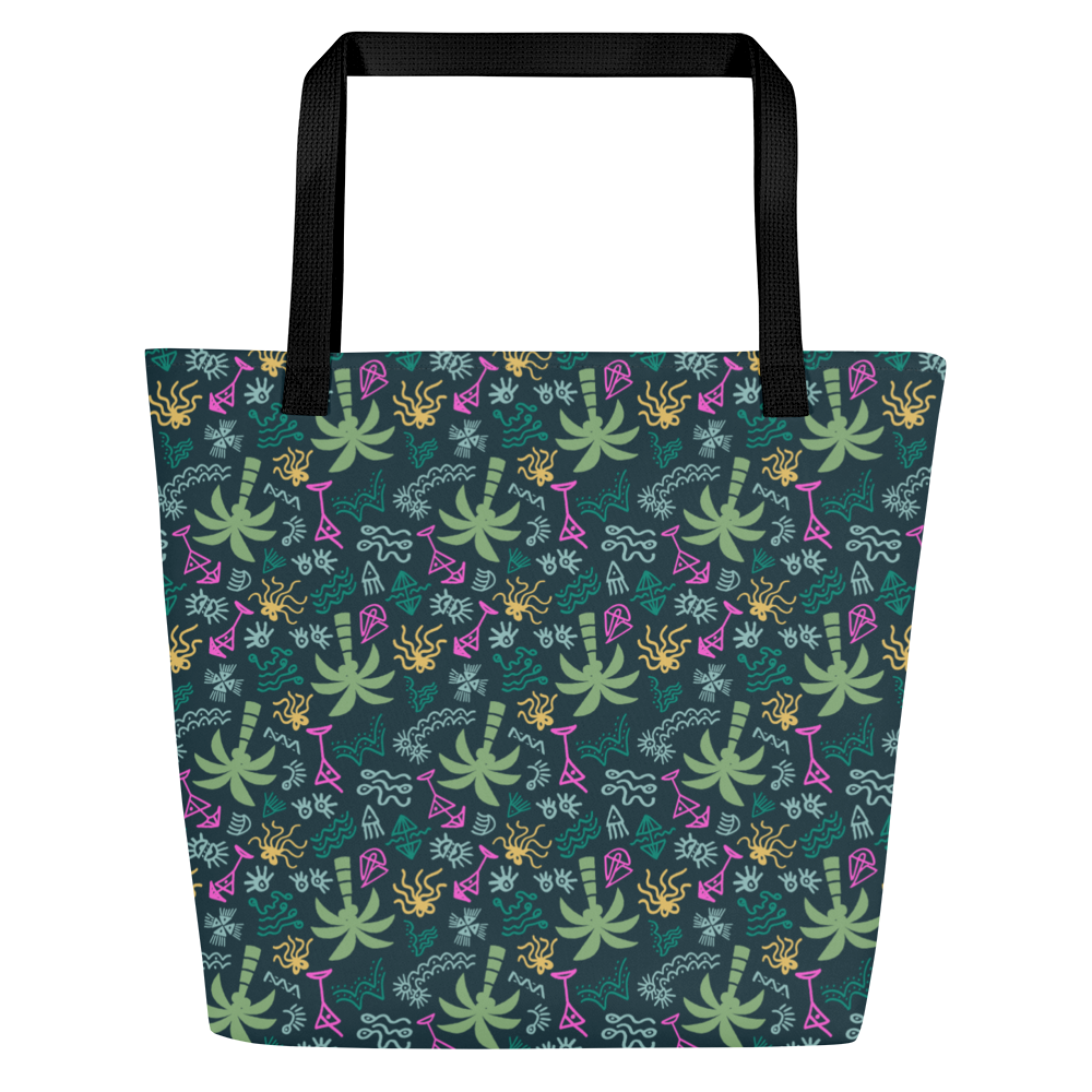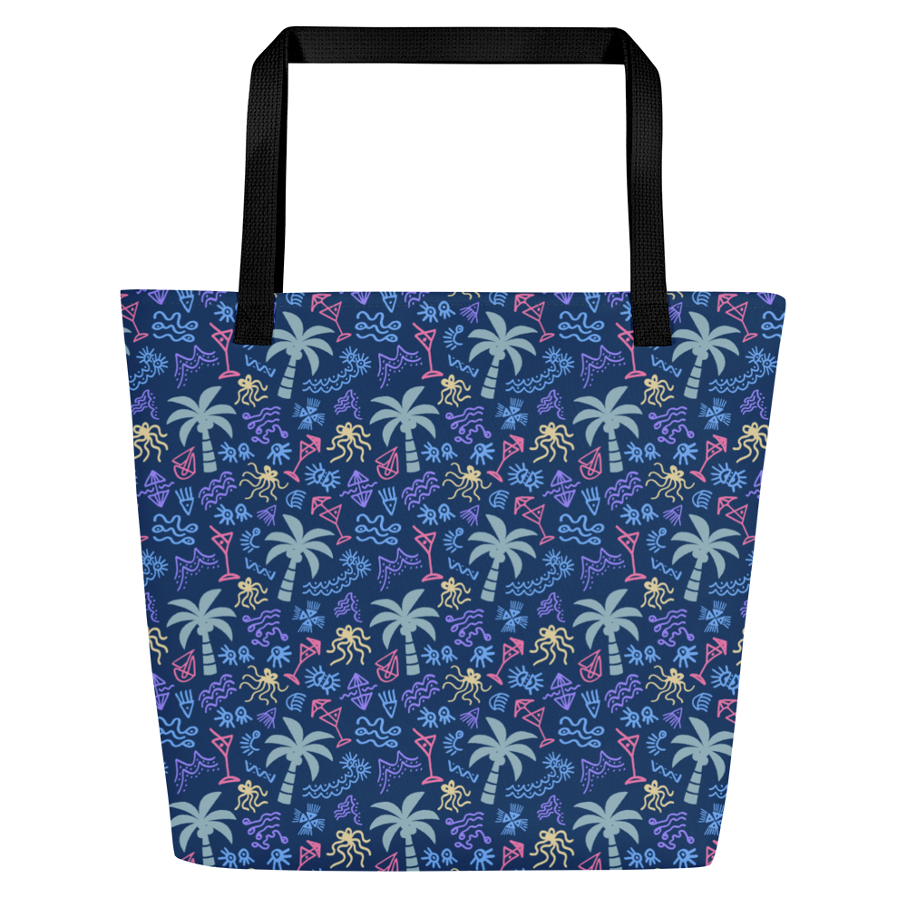 Hit the beach in style with this Tote Bag, perfect for carrying all your essentials. Its spacious design and durable, weather-resistant fabric make it ideal for beach days, while the palm print adds a tropical touch.