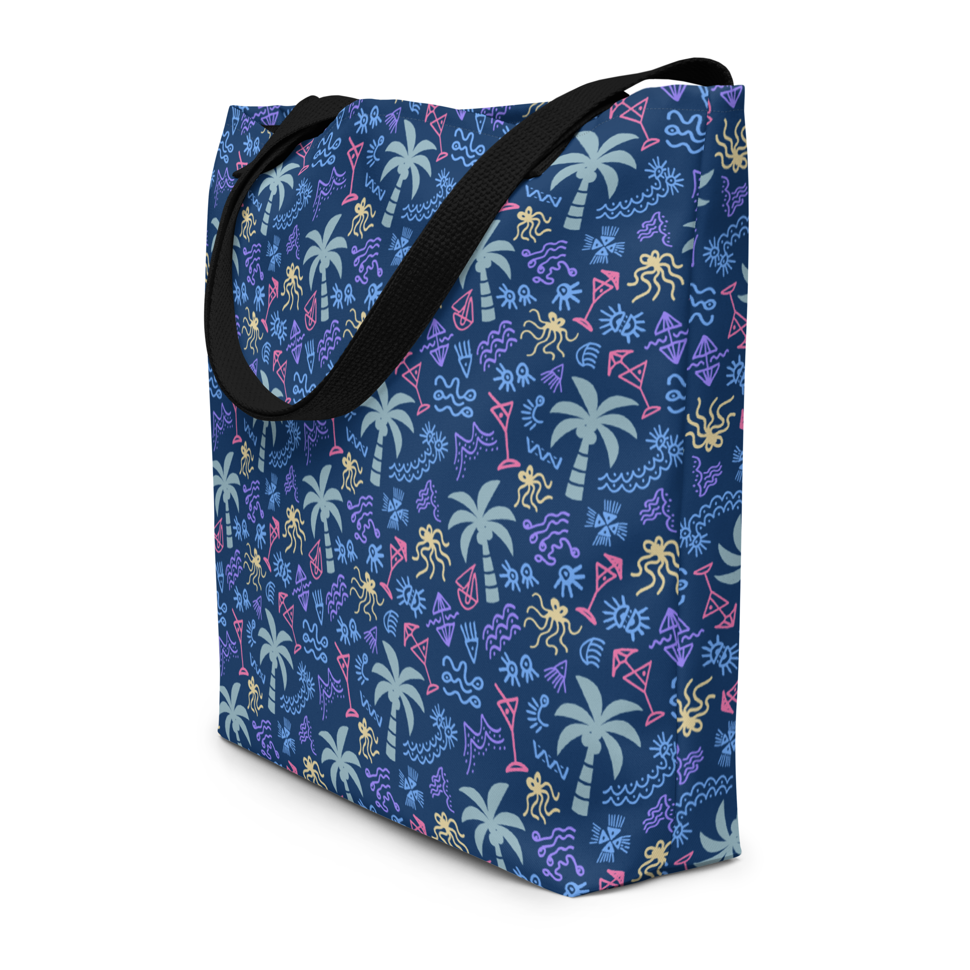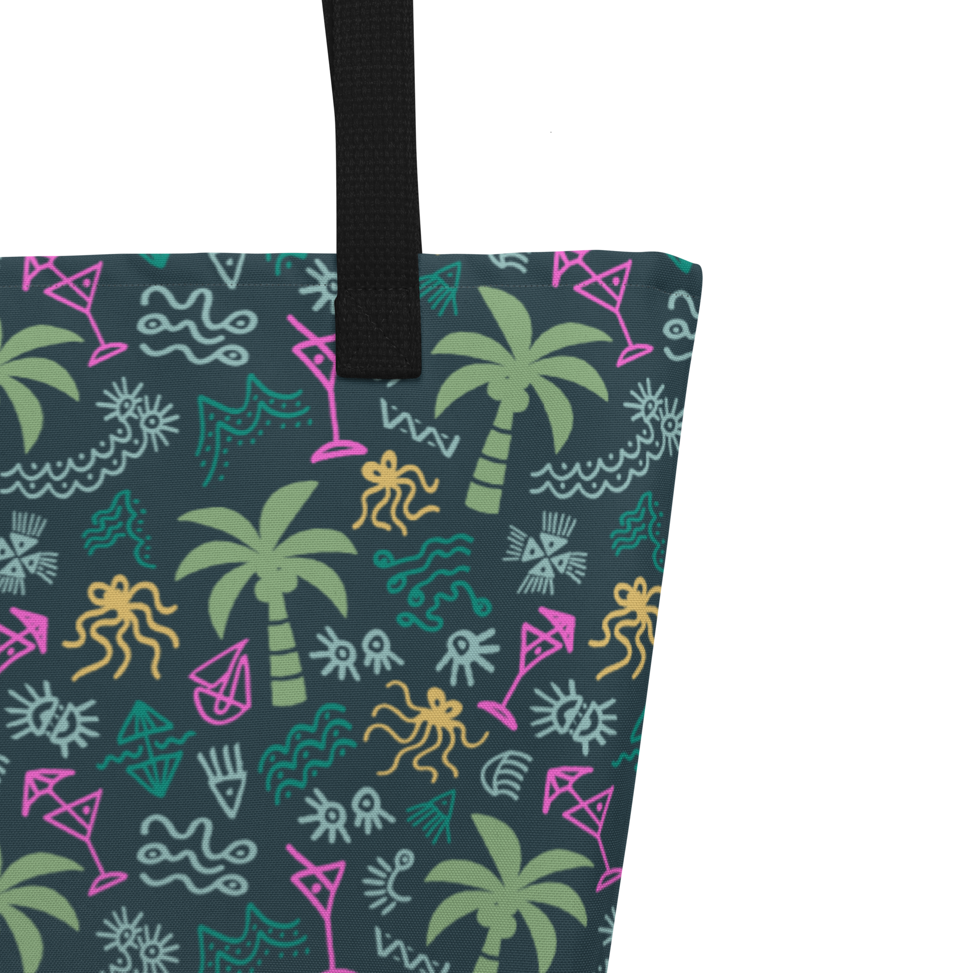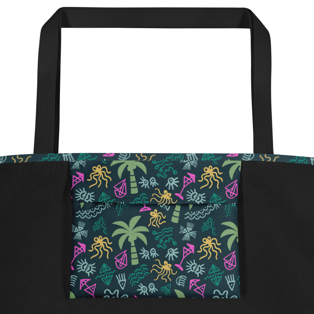 Hit the beach in style with this Tote Bag, perfect for carrying all your essentials. Its spacious design and durable, weather-resistant fabric make it ideal for beach days, while the palm print adds a tropical touch.