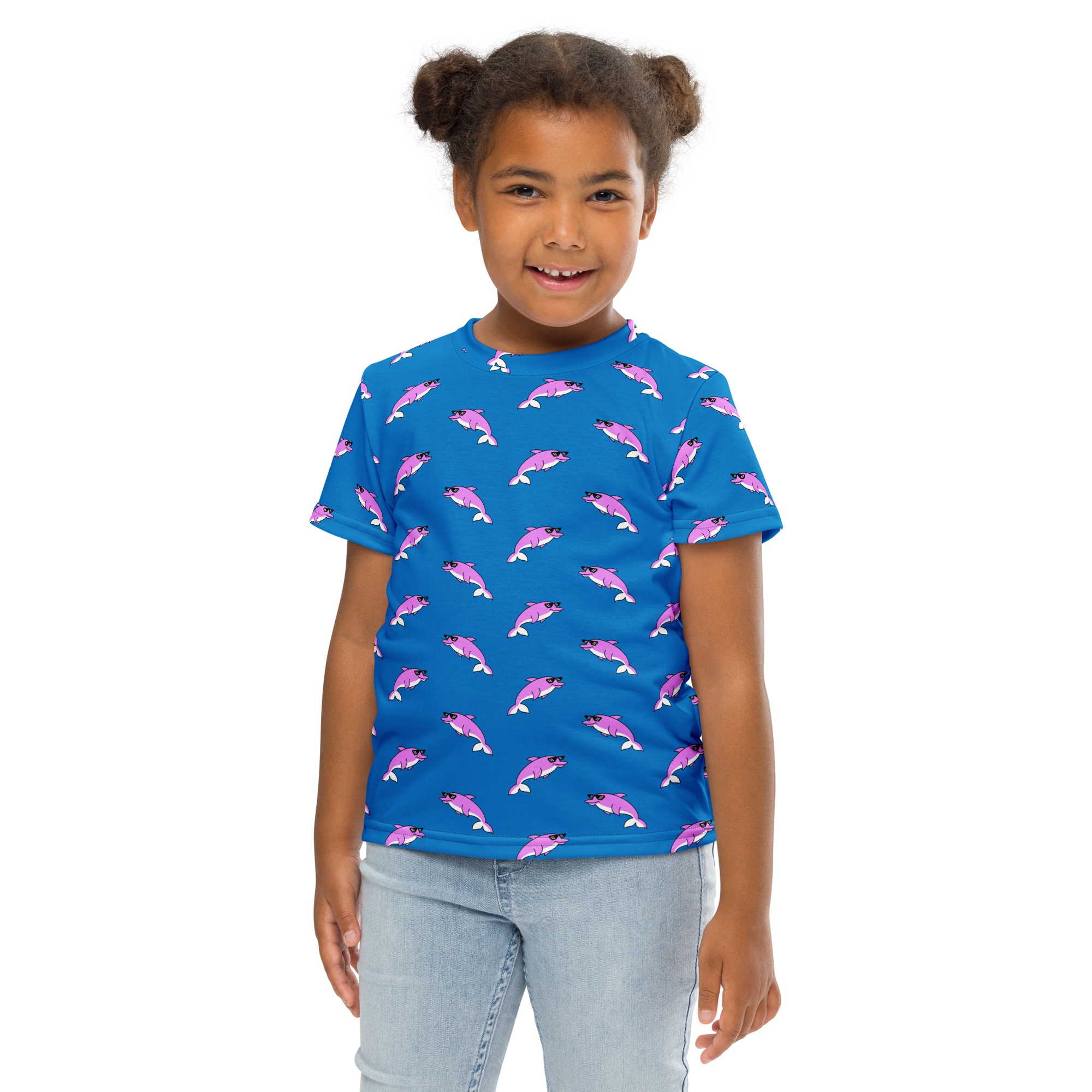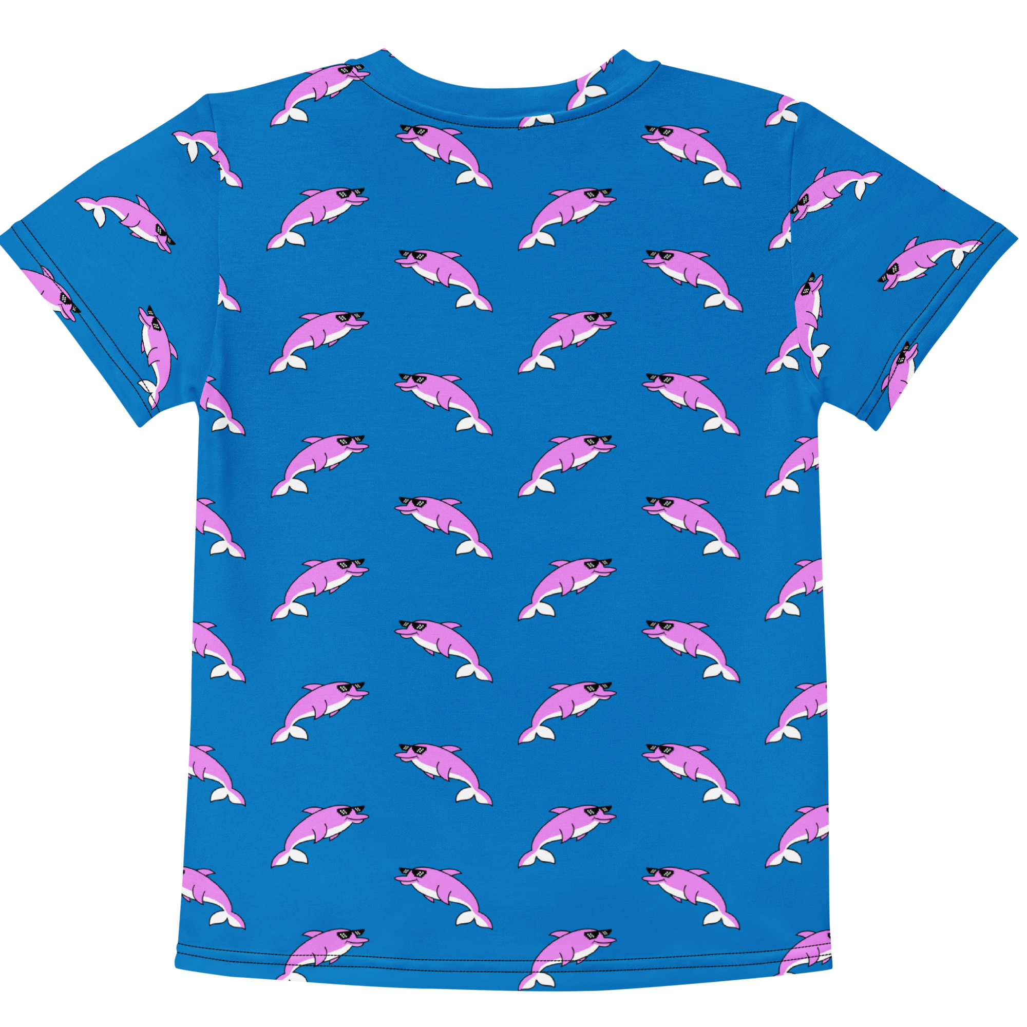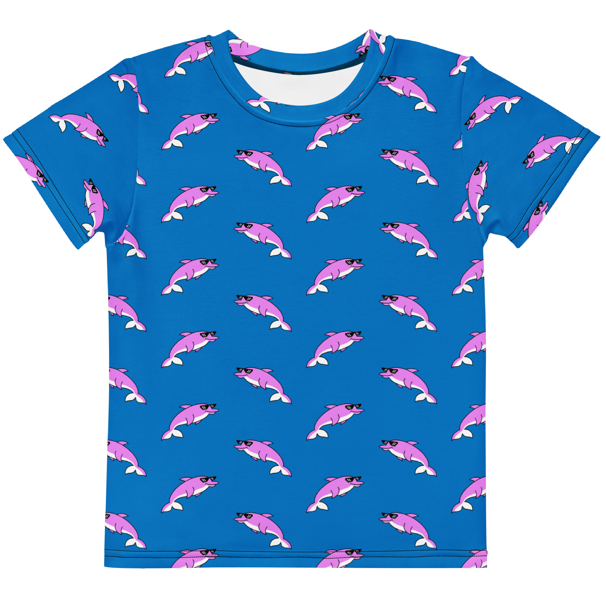 Make a splash with the ultimate kids’ tee! Featuring a bold, retro pattern of dolphins, tugboats, and a “Deal With It” duck, this colourful design captures the fun, carefree spirit of summer. Made for comfort and style, it’s perfect for active kids ready for standout adventures in the sun.