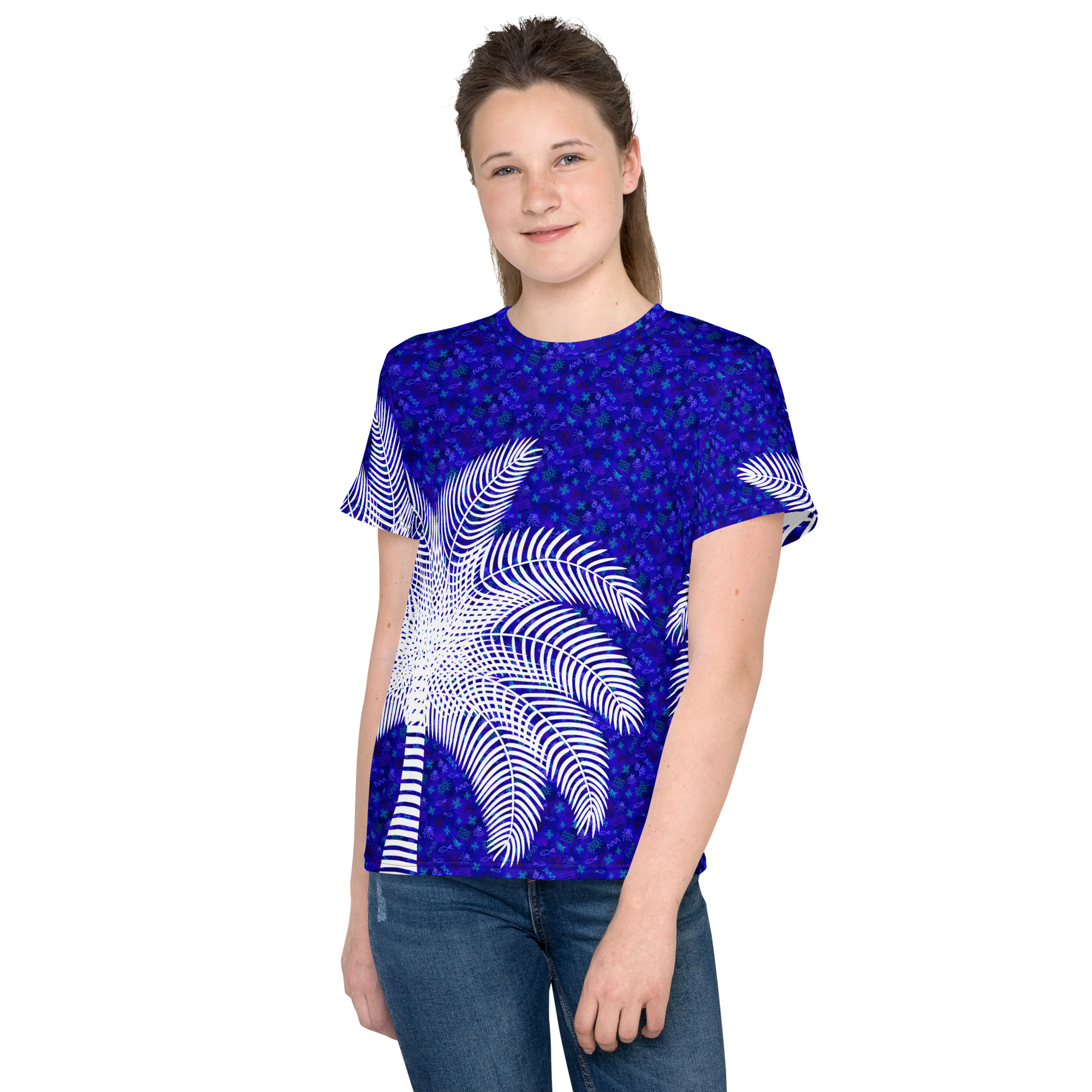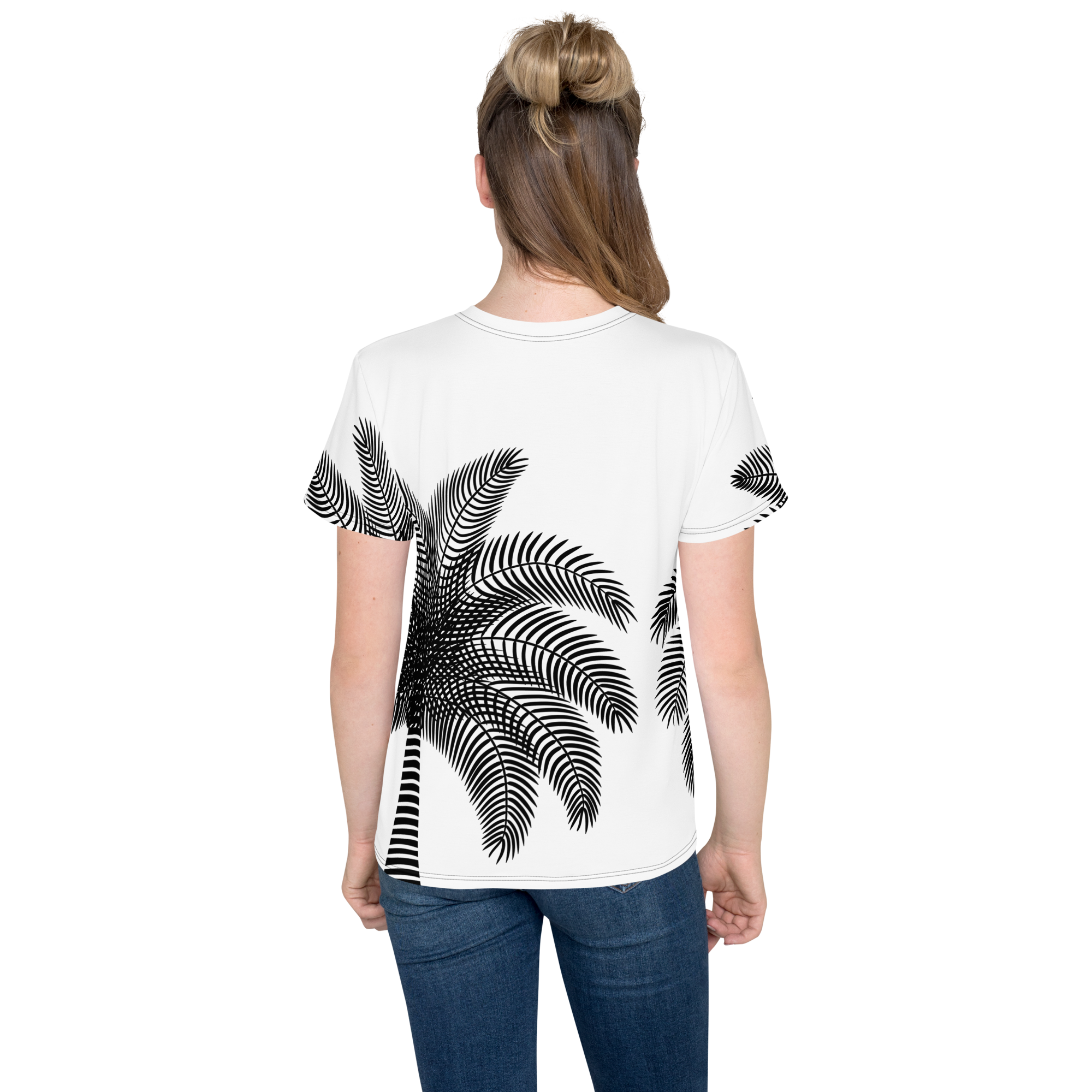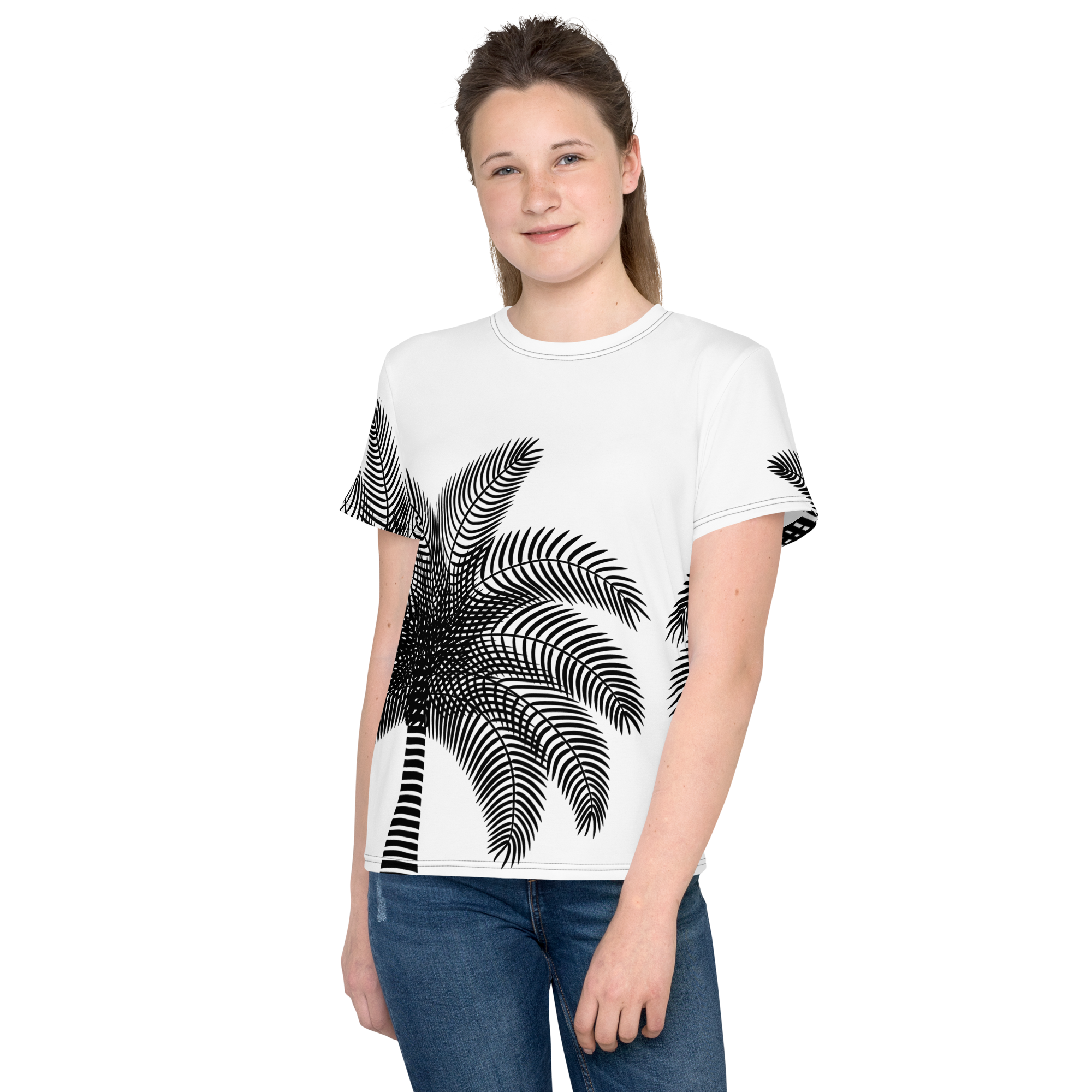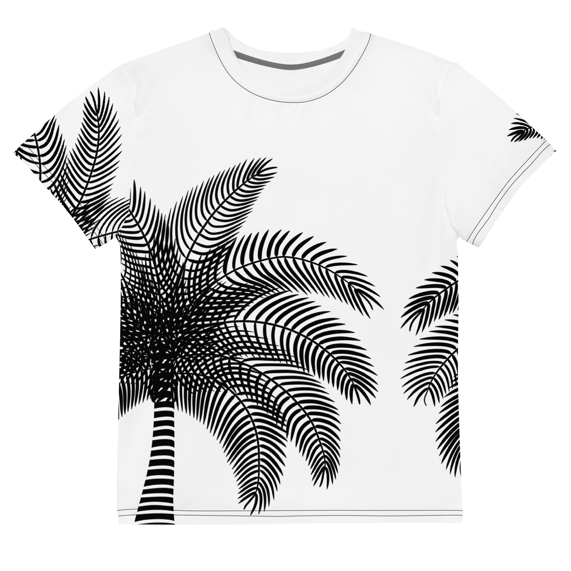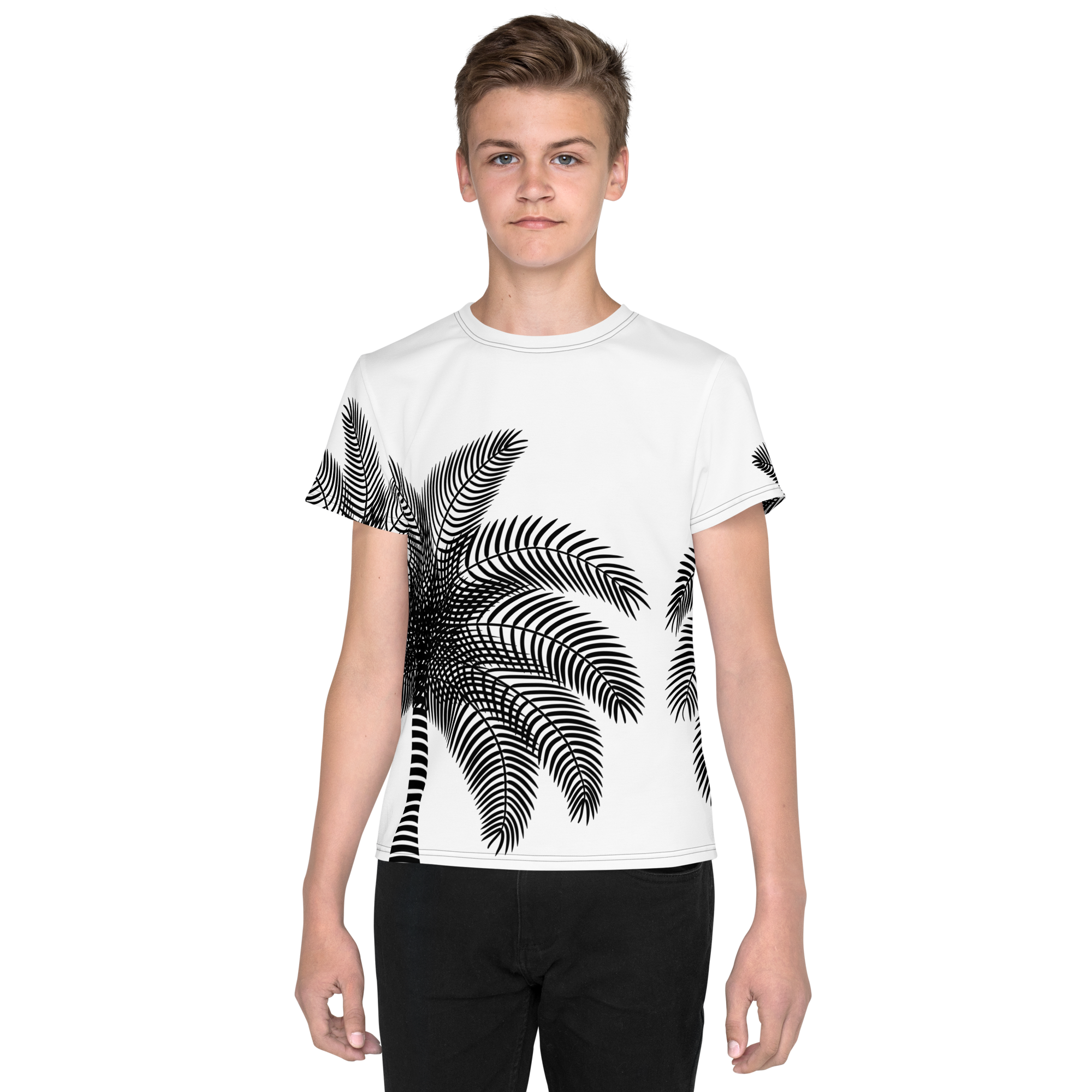 Lightweight and comfortable, this youth tee features a vibrant tropical motif with a bold palm print. The striking design captures the essence of an island vibe. It’s perfect for young adventurers who want to embrace the spirit of summer fun.