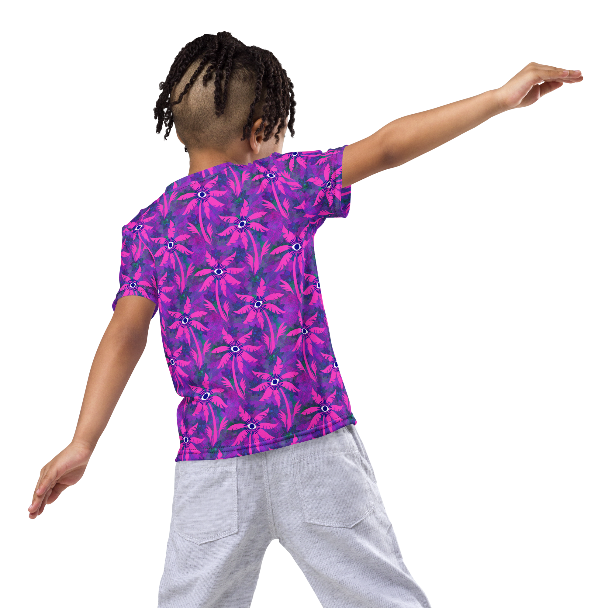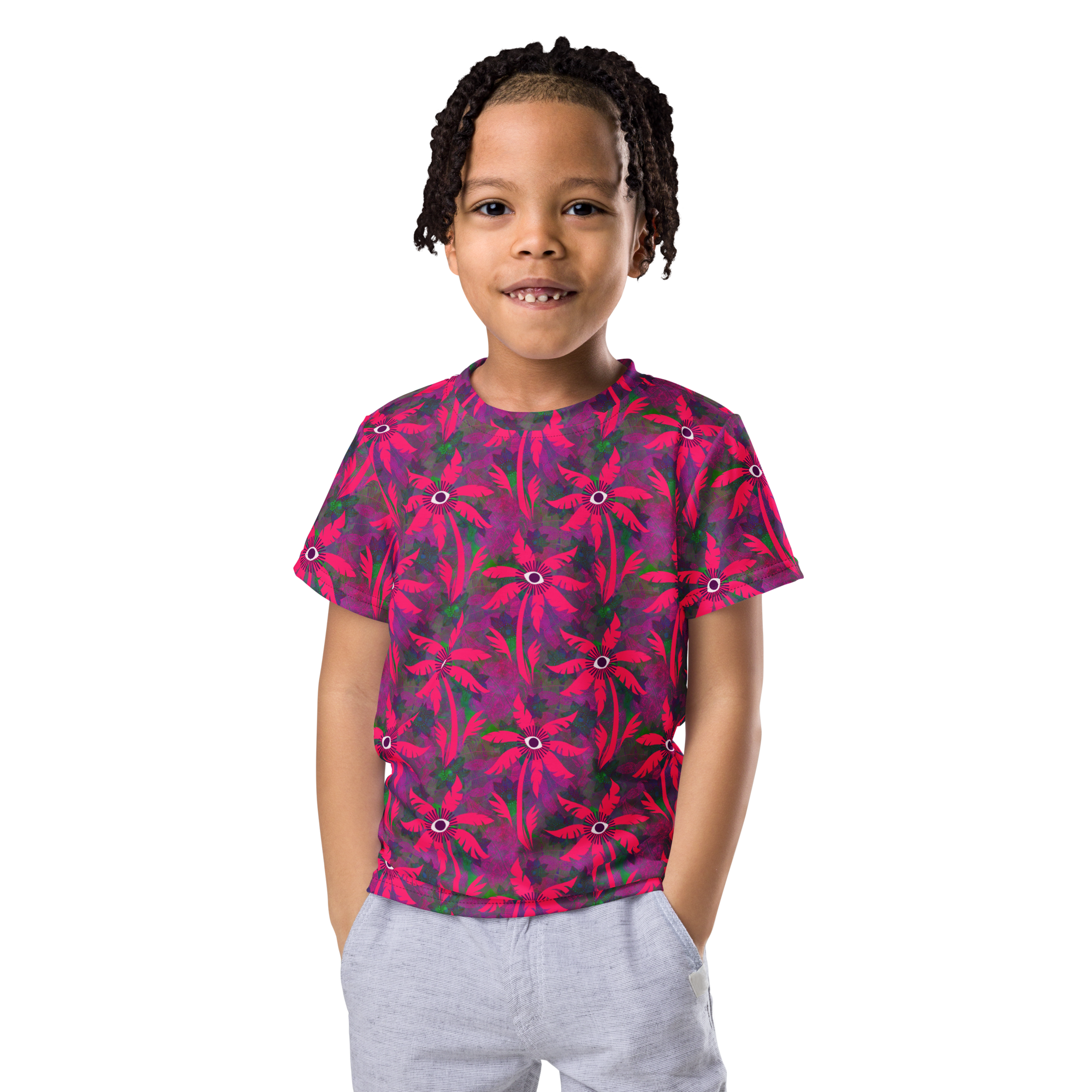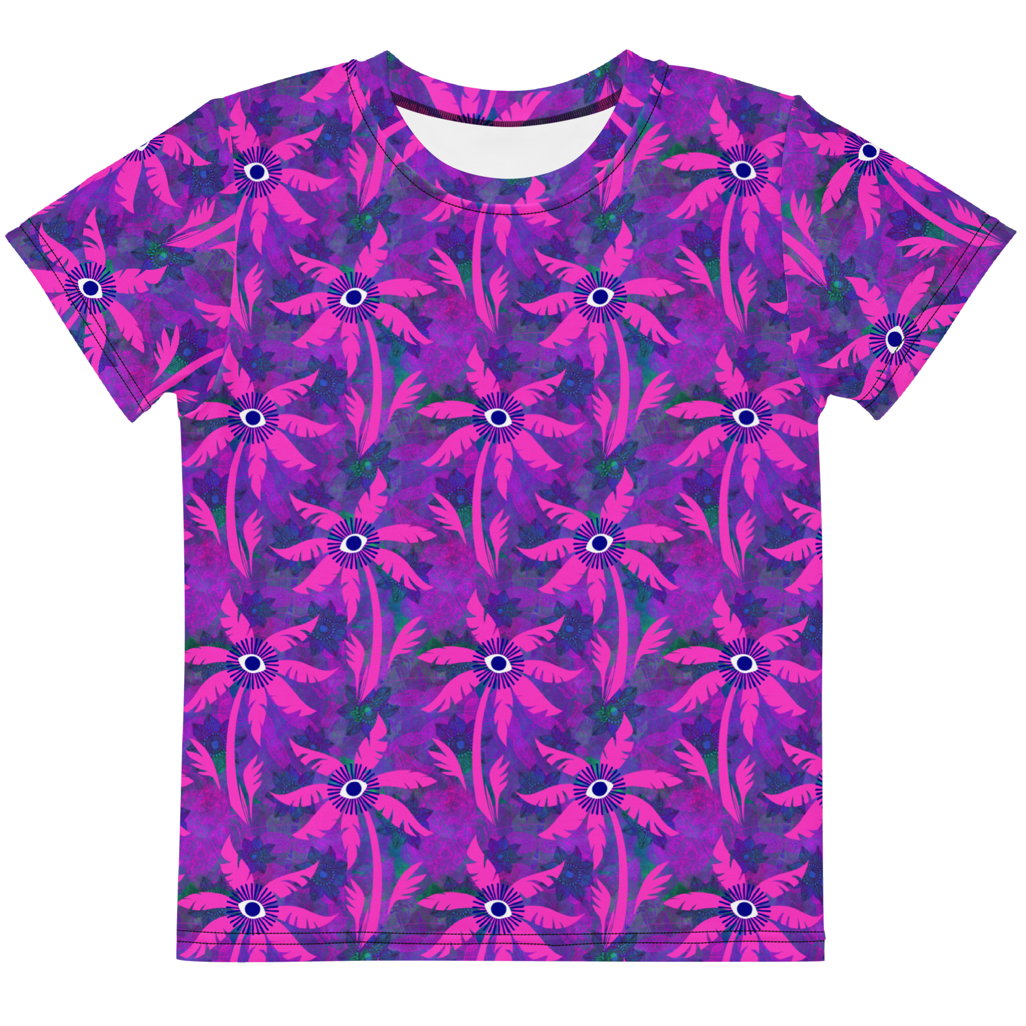 This tee is easy to wear and made for warm-weather getaways. With its bright, breezy wave-inspired design, it brings a fresh island vibe to every adventure. The bold abstract print evokes images of ocean swells and sun-faded shores, while the soft, cotton-like fabric keeps kids cool and comfortable throughout the day.