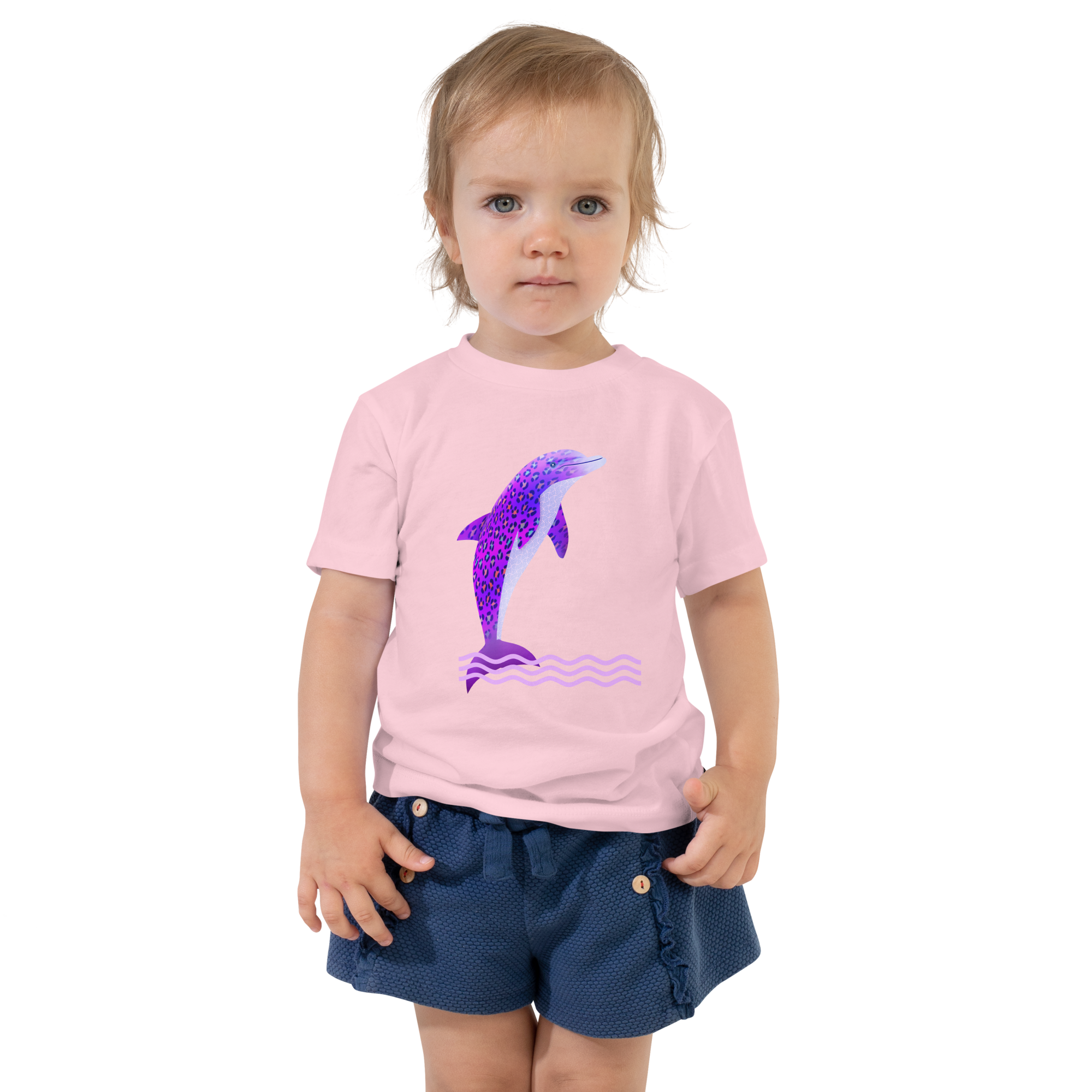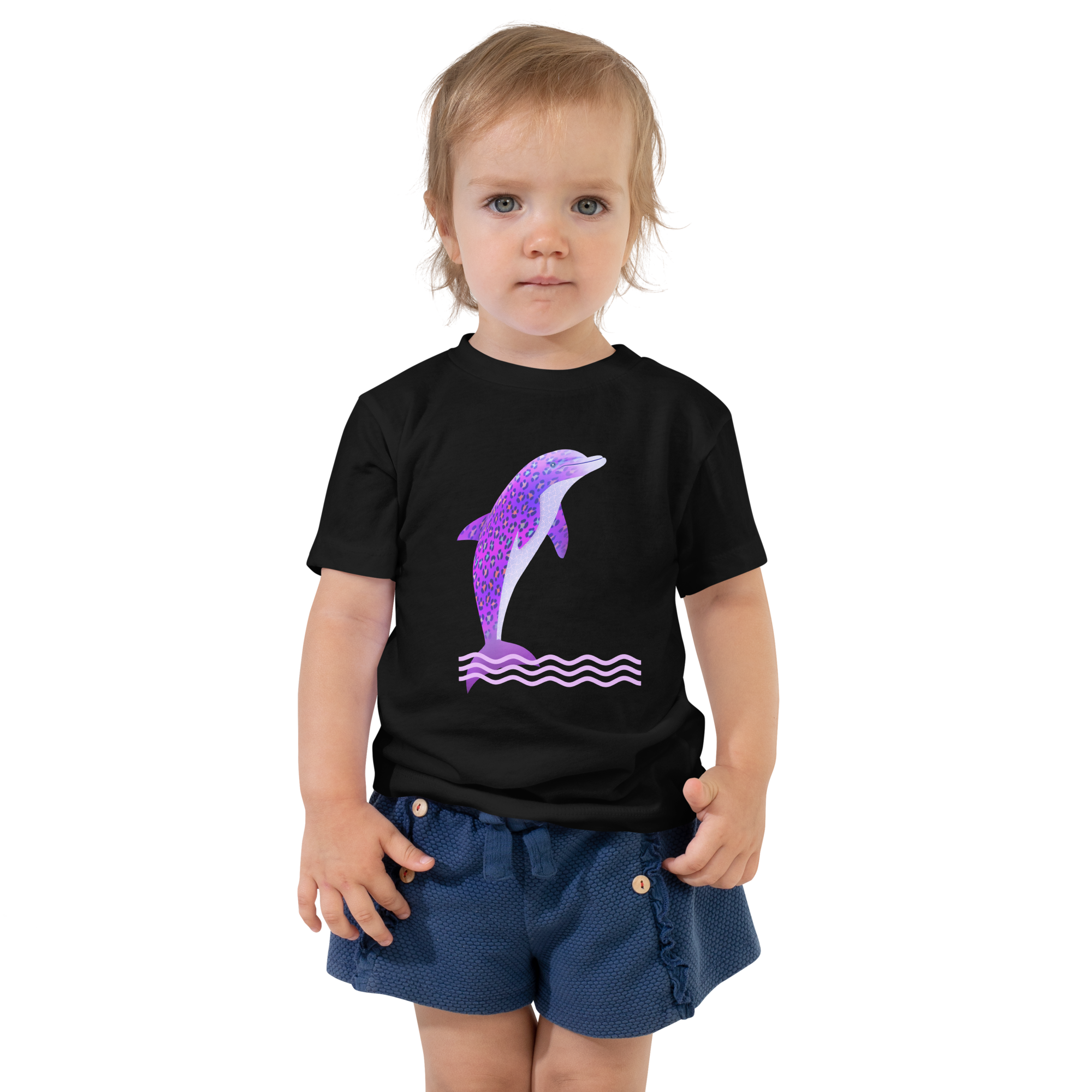 Let your toddler enjoy playing comfortably and in style with this adorable short-sleeve jersey t-shirt made from 100% cotton. Showcasing the fun spotted leopard Dolphin design on the front, this soft and durable tee is sure to be a favorite in their wardrobe.