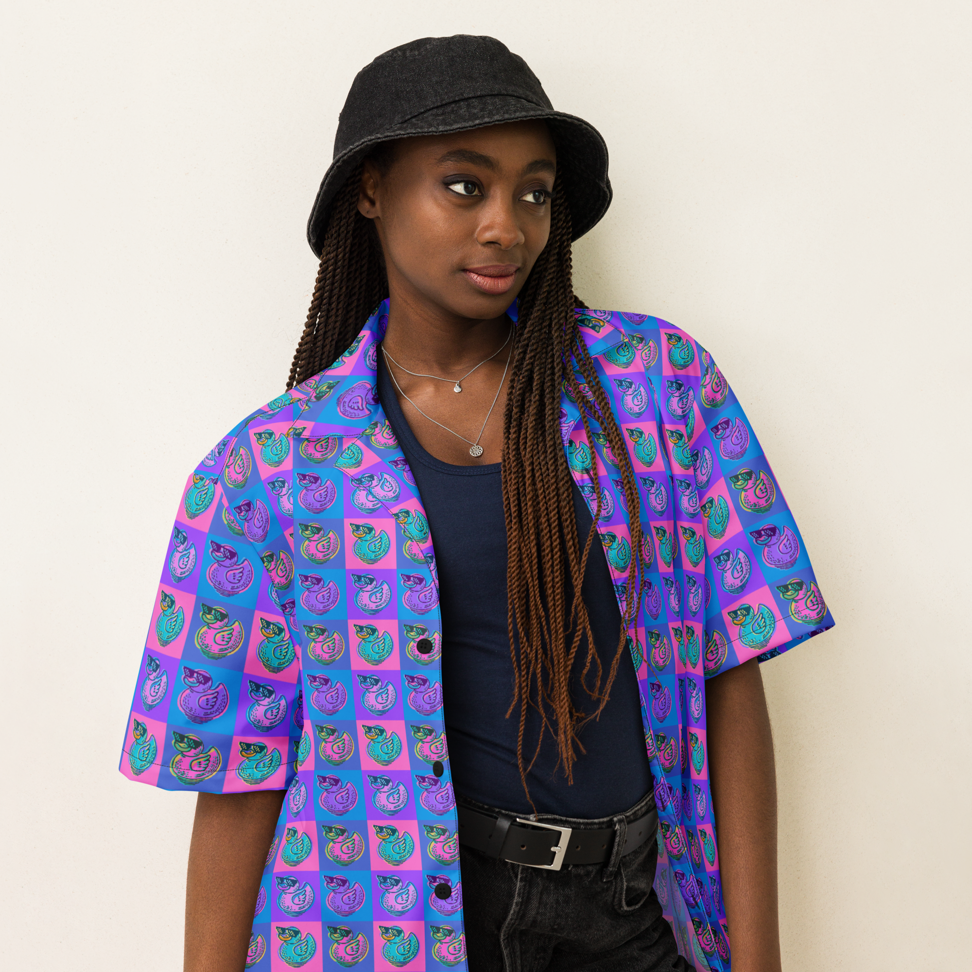 The vibrant design ensures you’ll stand out in any crowd. Introducing your must-have summer shirt, full of playful vibes! This shirt adds a dash of whimsy to your summer wardrobe. Its featherlight, moisture-wicking fabric keeps you cool and comfortable, even on the hottest days.