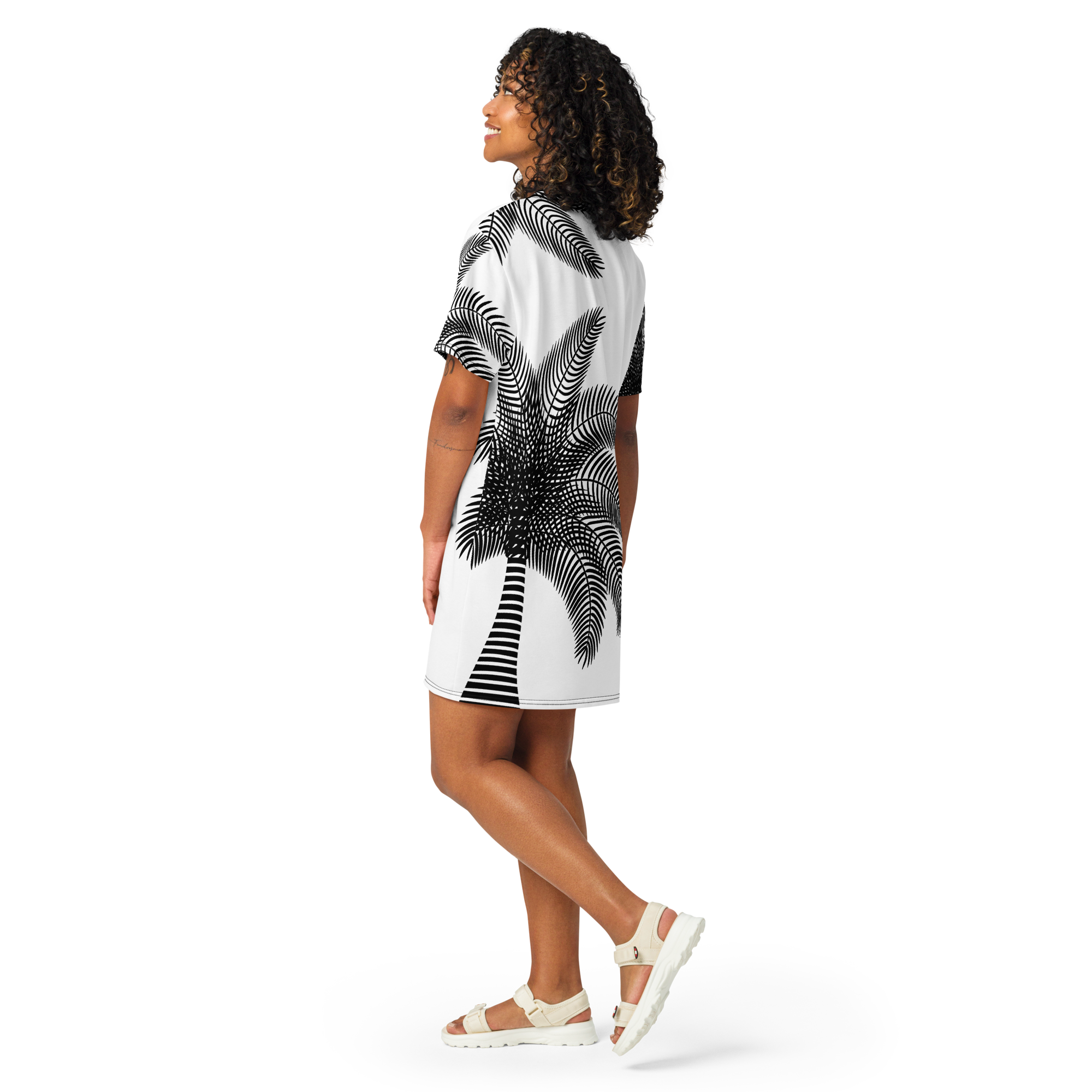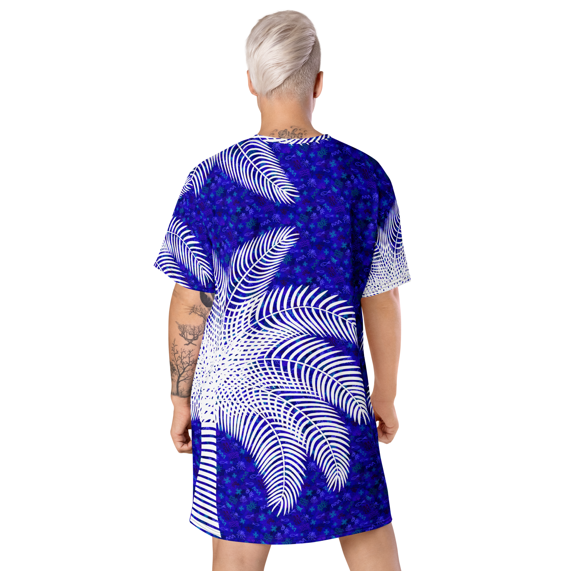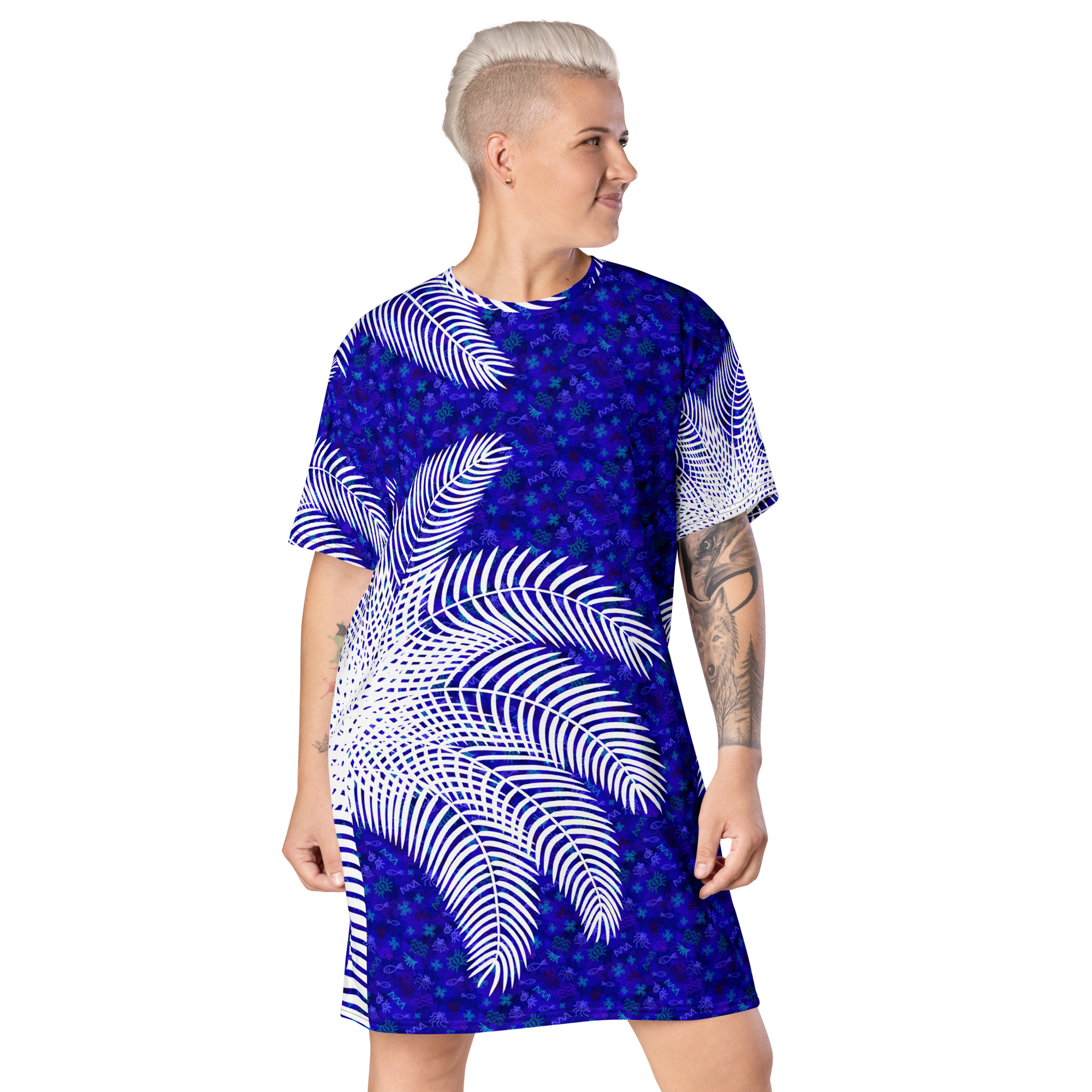 This delightful oversized T-shirt dress is the perfect companion for your beach adventures! Its lightweight and flexible design pairs wonderfully with a bikini and tote for sunny days, or with a light jacket for warm evening dinners.