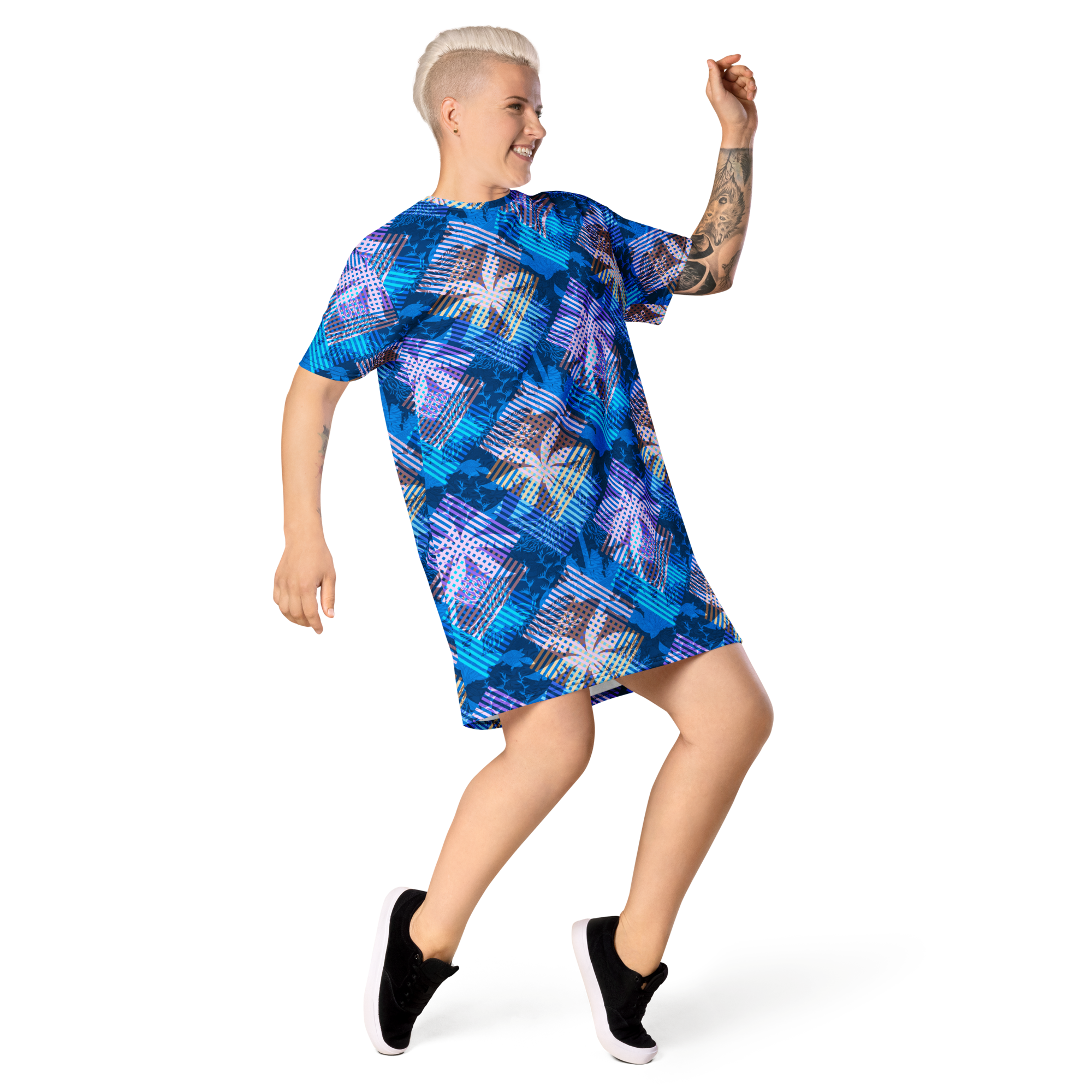 This t-shirt dress is made for those who like their island life a little dressed up. Soft stretch fabric in a comfortable oversize fit — dress it up with a jacket for the evening, keep it easy with sneakers for the day, or wear it as a nightie. From beach to dance floor, dressed for wherever the days and nights take you.