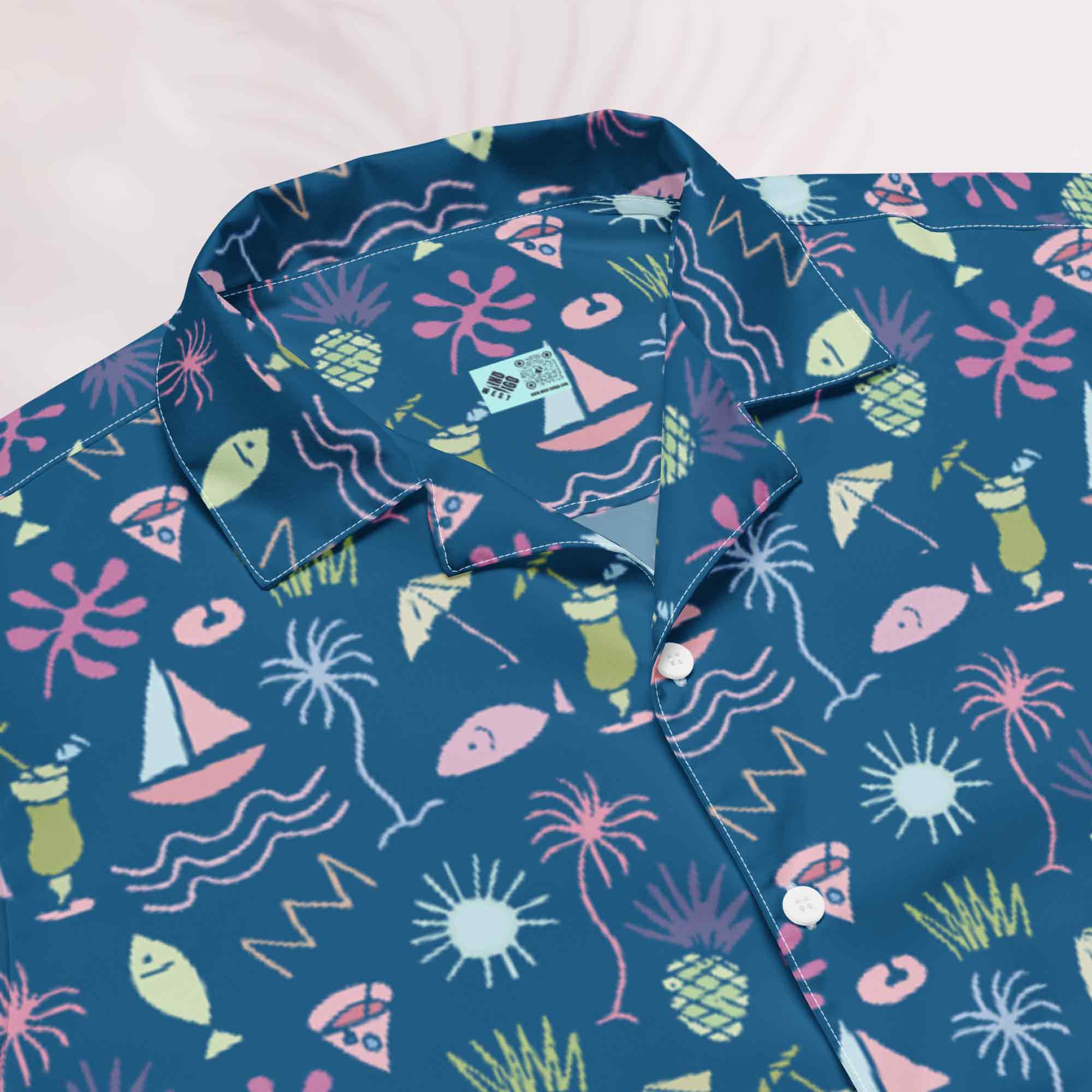This shirt is perfect for the summer season. Vibrant and playful, it’s ideal for stylish, sun-soaked adventures.